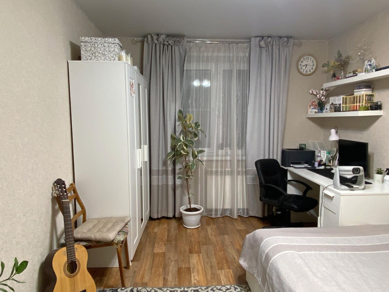 Отличное состояние: стены и потолки выровнены, окна пластиковые, батареи биметаллические, все современное, оборудование в рабочем состоянии.