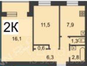 Общая площадь 49 м2, без учета лоджии 47,1 м2. Кухня правильной квадратной формы 8,3 м2, две изолированные комнаты 16,1 и 11,5 м2.