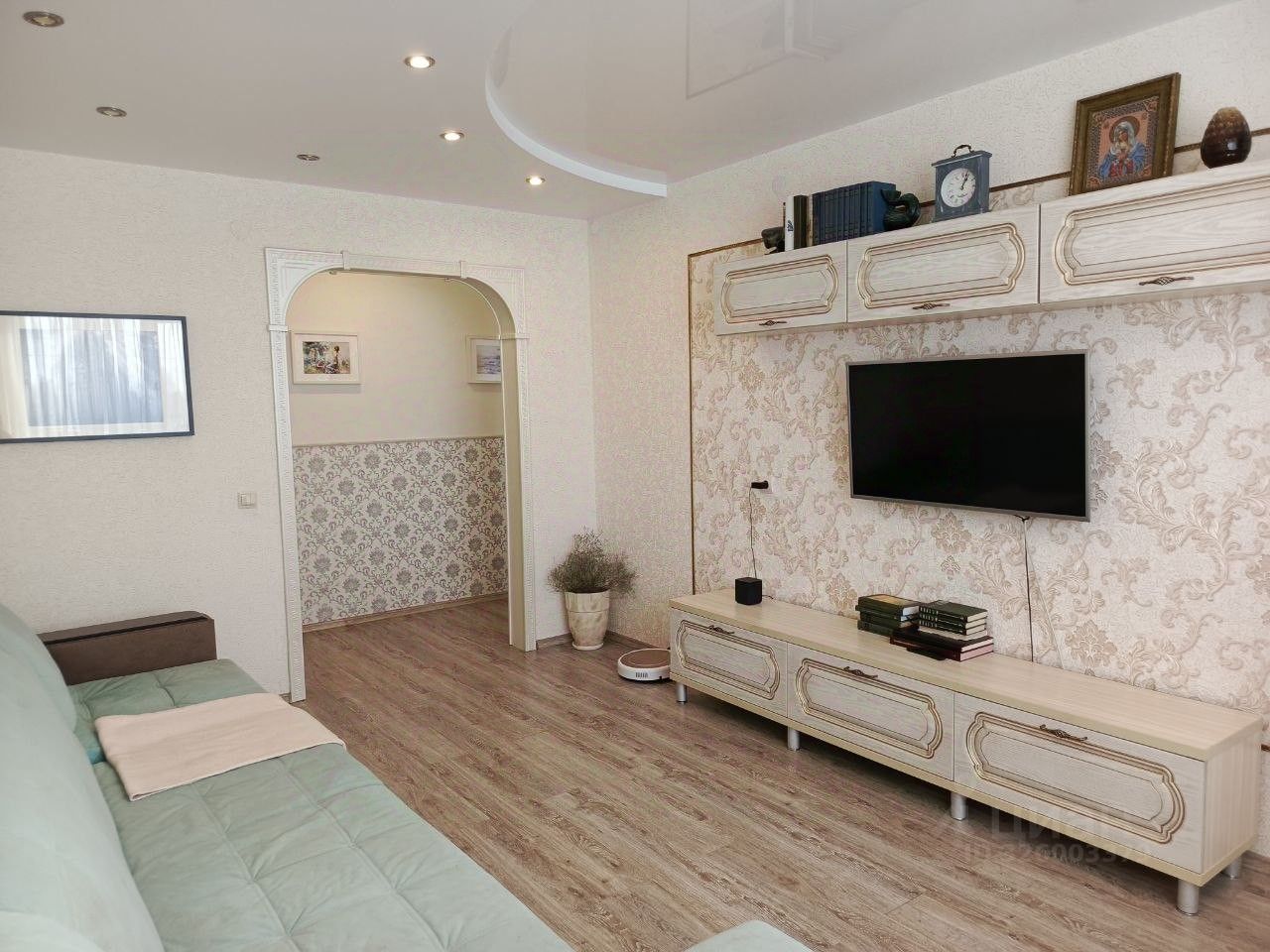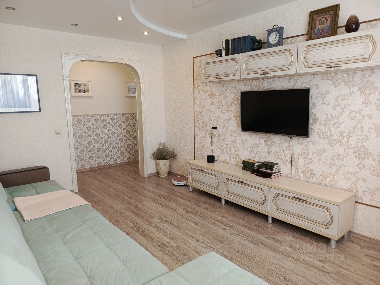 В квартире сделаны полы по немецкой технологии, что обеспечивает их ровность и теплоизоляцию. Стены выровнены. На кухне установлен гарнитур ''Кухни Мария'',продумана до ''мелочей'' дизайнером.