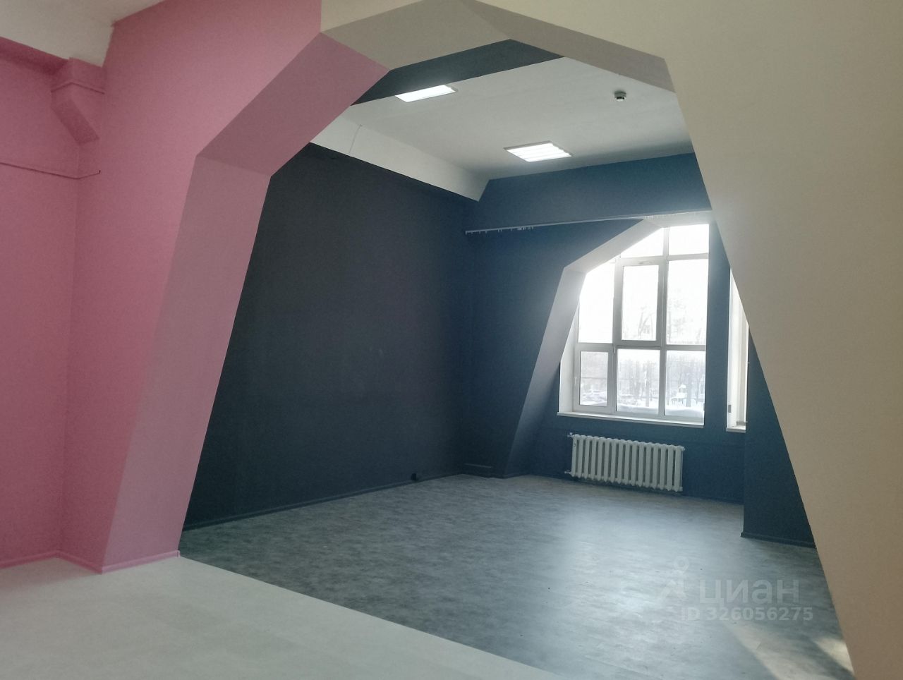 Помещение однообъёмное, светлое, высокие потолки, большие окна, несколько санузлов на этаже, кафе.