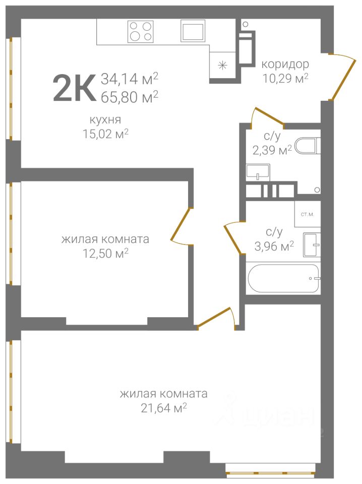Общая площадь65,8 м2