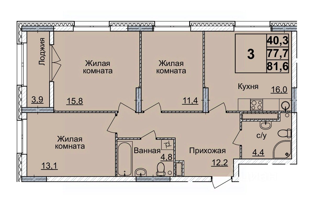 Общая площадь81 м2