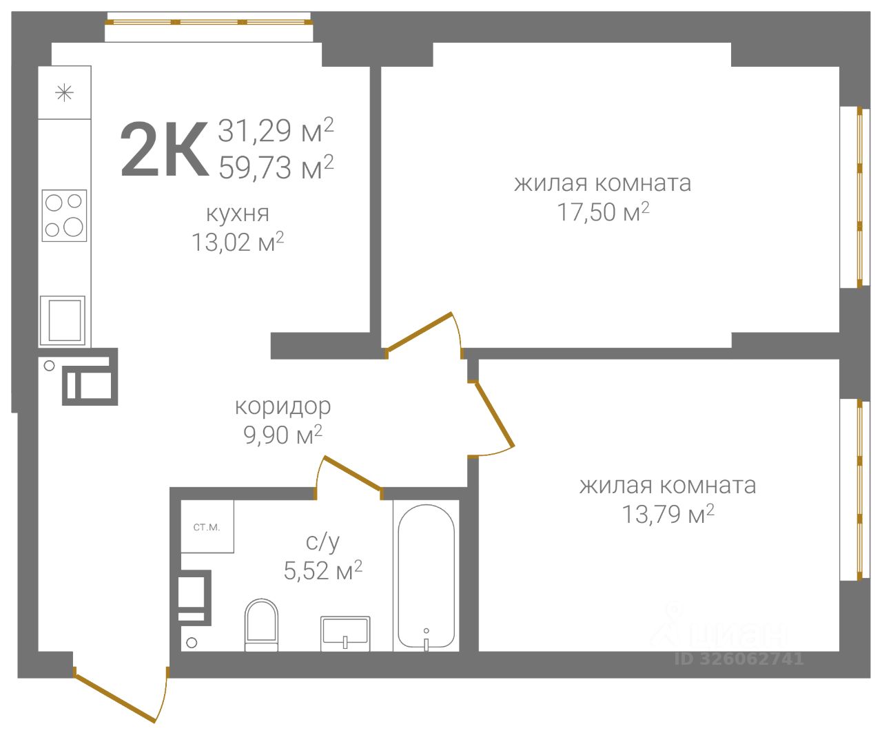 Общая площадь59,73 м2