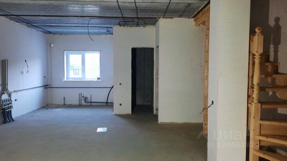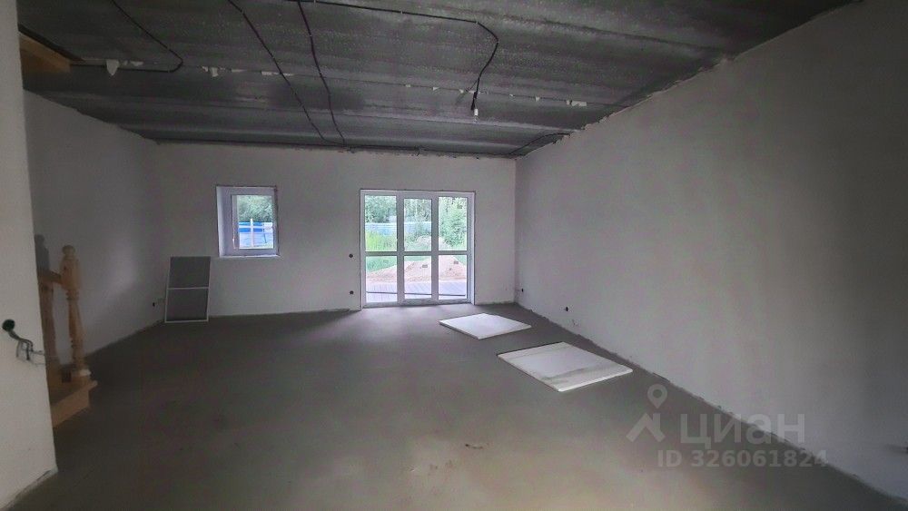 Что входит в отделку: стены заштукатуренные под обои, на полу ровная стяжка, на окнах откосы и подоконники, разводка электричества, теплые полы по всему первому этажу от двухконтурного котла, радиаторы на 2ом этаже, деревянная лестница, двухконтурный котел.