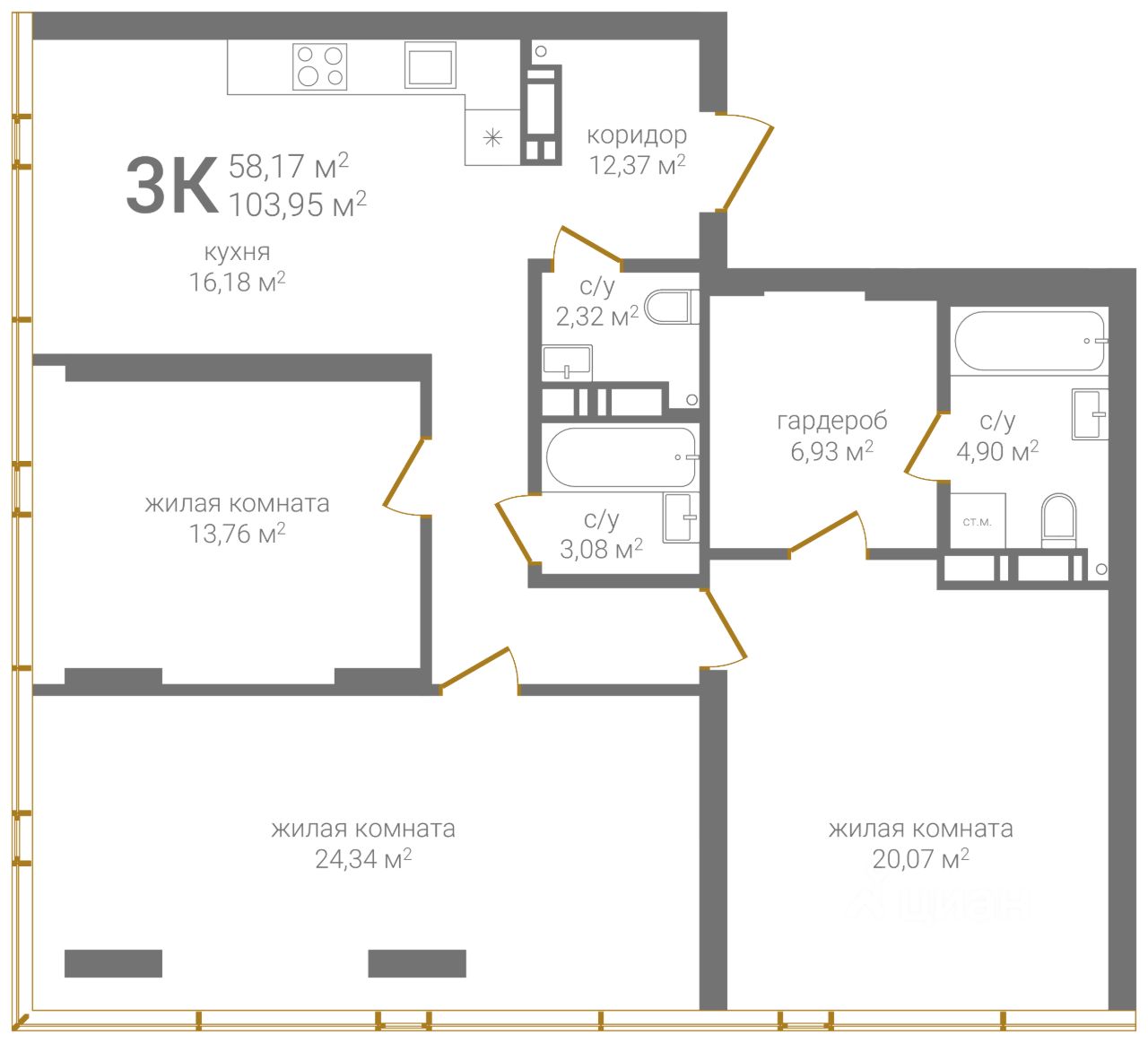 Общая площадь103,95 м2