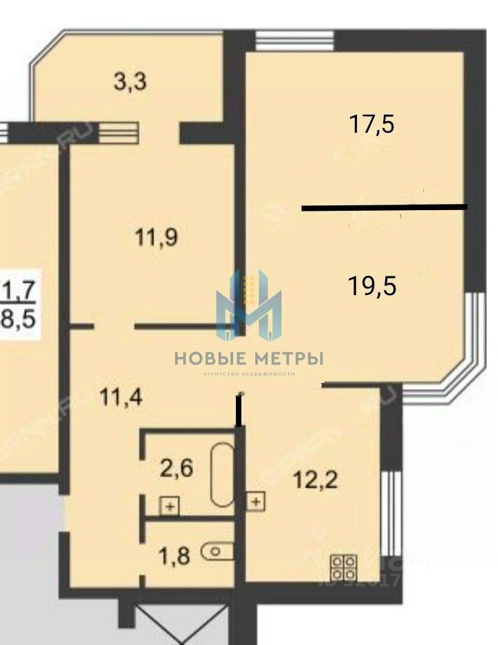 ПЛАНИРОВКА НА РАЗНЫЕ СТОРОНЫ (S комнат 19 м2 + 17 м2+12 м2)