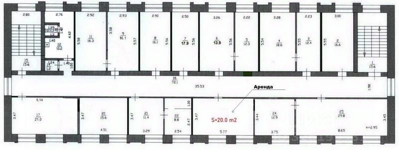 ''Аренда офиса. Нижний Новгород. Автозаводский район, ул. Ватутина. Офис расположен на 3-м этаже административного здания. Площадь офиса 20.0 кв.м. Офис одной комнатой. Хороший ремонт. На полу линолеум, светодиодные светильники. Два больших окна. Сдается от юр.лица. Ставка аренды с НДС. Дополнительно к аренде оплачивается эл.энергия, интернет и услуги связи. Остановка общественного транспорта в шаговой доступности. На первом этаже здание расположено кафе. Режим работы с 7-00 до 22-00.'', N 107617