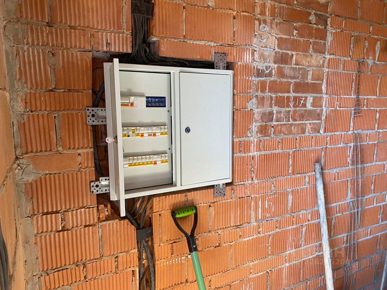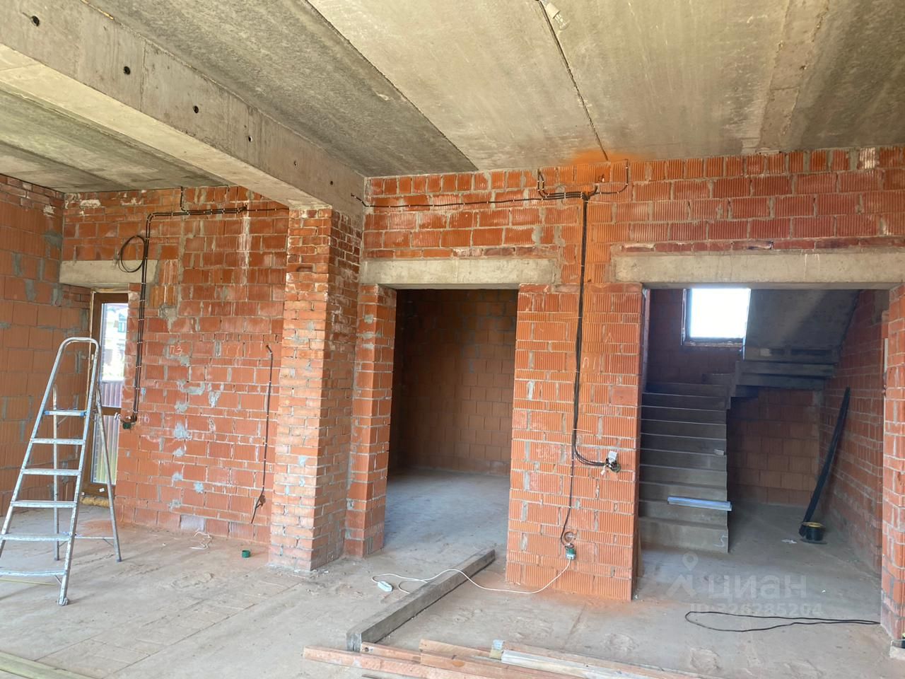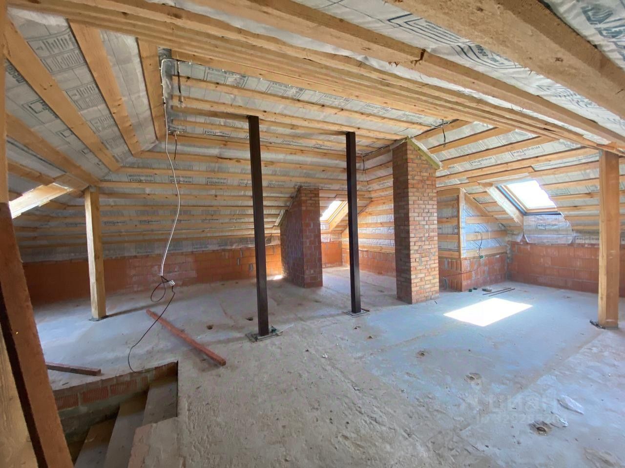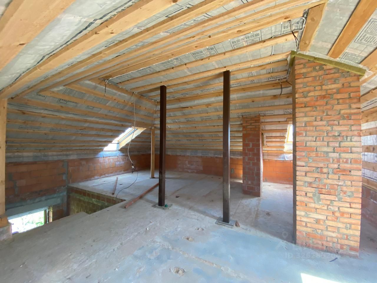 Дом кирпичный , 3 этажа ( 3- мансардный), газ подведен, канализация - септик, вода - скважина , электричество - разводка сделана. Парковка перед воротами на улице на 2-3 машины забетонирована, ворота откатные на пульте. Газон.