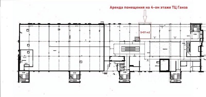 ''Аренда помещения в Торговом Центре Ганза. Нижний Новгород. Нижегородский район. Улица Родионова д.165 к13. Помещение общей площадью 57 кв.м. Расположено на 4-ом этаже. Помещение по планировке однообъемное. Возможно установить свой санузел. Есть подвод воды и канализации. Установлен кондиционер. На полу керамогранит. Возможно исползовать для сферы услуг, выставочный зал, офис и т.п. Дополнительно к аренде оплачиваются коммунальные платежи. Коммунальные услуги - (электроэнергия по счетчику, тепло-, холодоснабжение, вентиляция, исходя из площади, ориентировочно 100 руб. за кв.м.). Сдается от юридического лица.'', N 107582