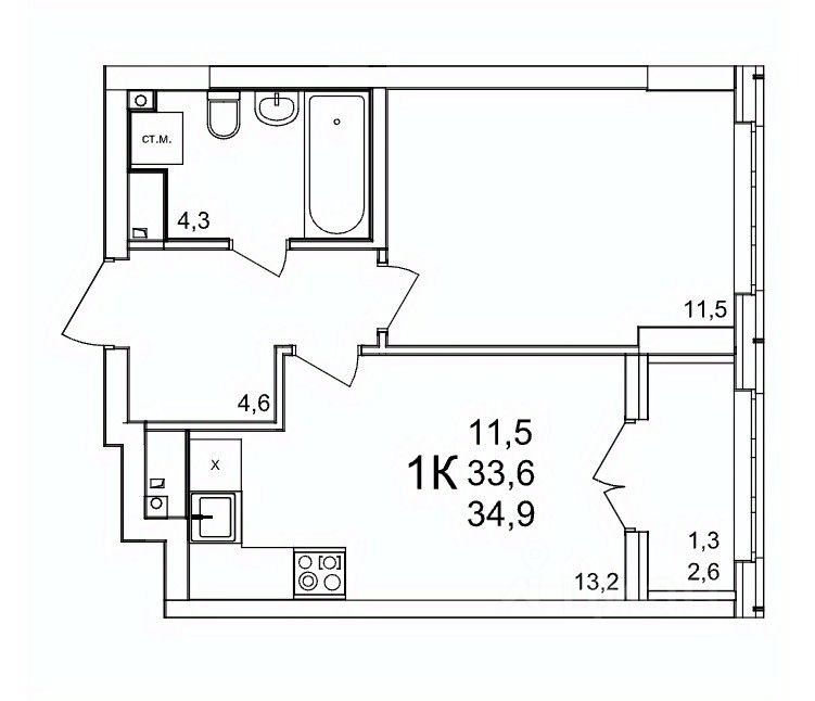 Общая площадь34,9 м2