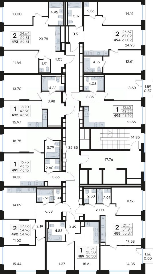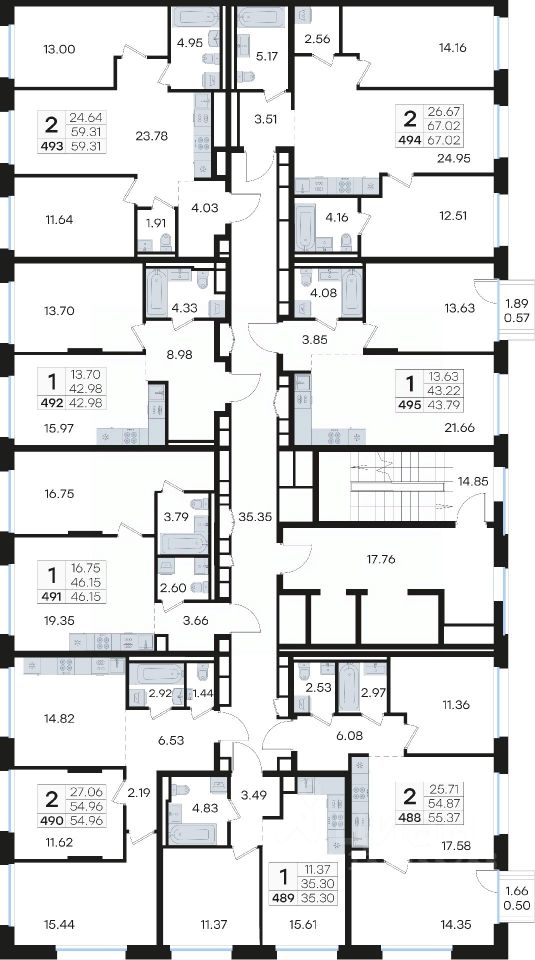 Продается 2-комн. квартира на 5-м этаже в строящемся проекте премиум-класса GloraX Premium Гребной канал. Общая площадь лота составляет 54,96 кв. м, из которых 27,06 кв. м отведено под жилую и 14,82 кв. м под кухонную зону. Номер квартиры - 490.