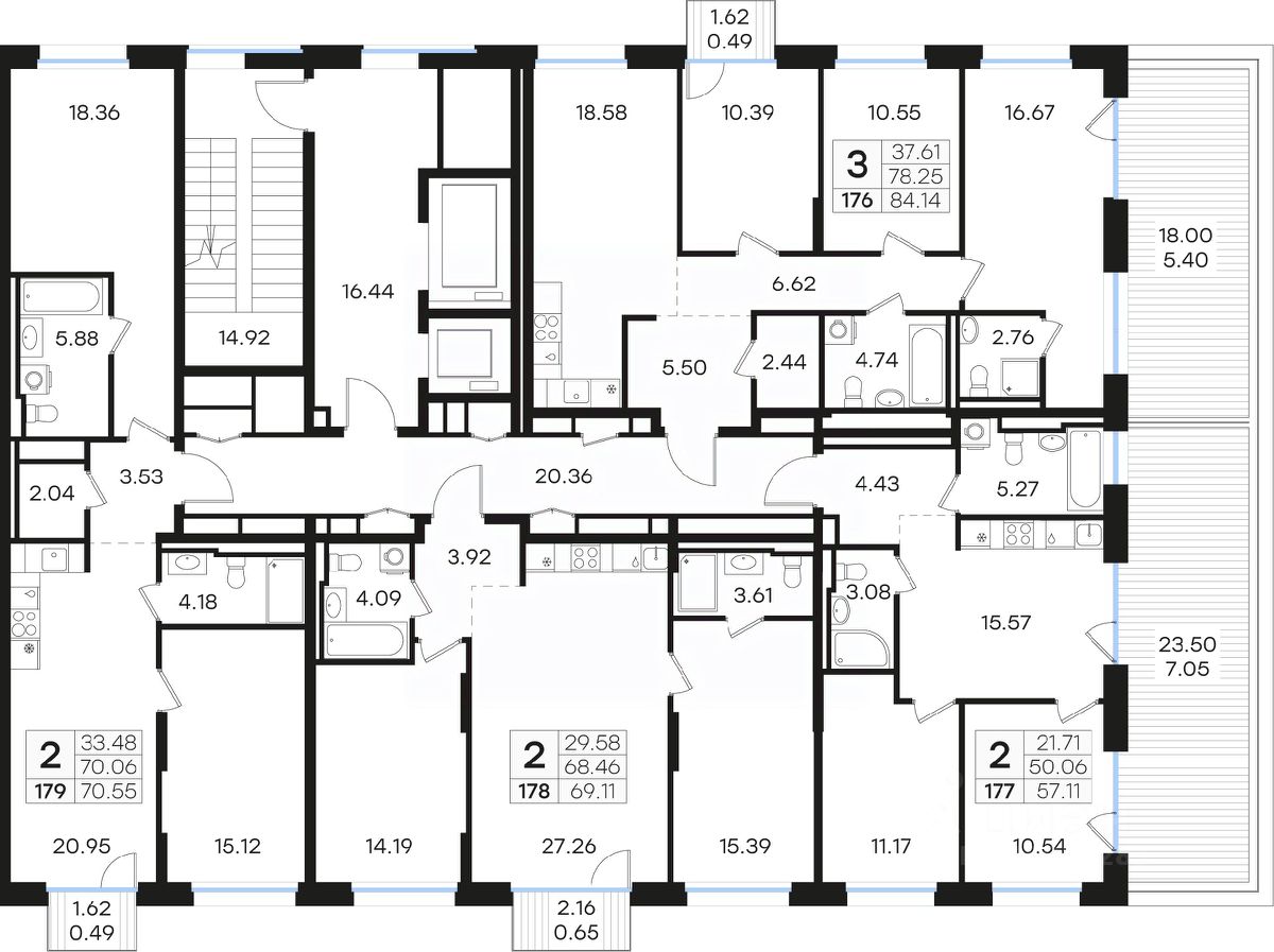 Продается 2-комн. квартира на 9-м этаже в строящемся проекте премиум-класса GloraX Premium Гребной канал. Общая площадь лота составляет 69,11 кв. м, из которых 29,58 кв. м отведено под жилую и 27,26 кв. м под кухонную зону. Номер квартиры - 178.