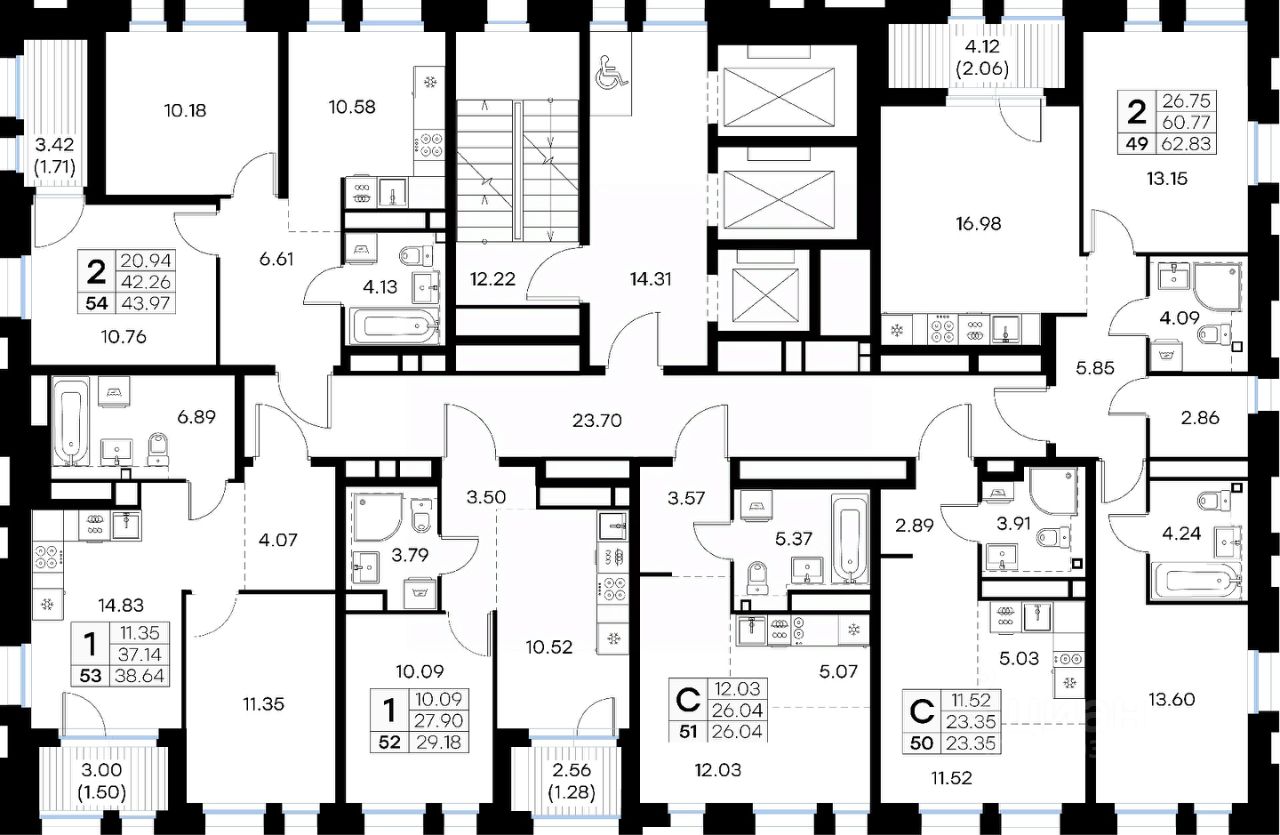 Продается 2-комн. квартира на 10-м этаже в строящемся проекте бизнес-класса GloraX Левобережный. Общая площадь лота составляет 62,83 кв. м, из которых 26,75 кв. м отведено под жилую и 16,98 кв. м под кухонную зону. Номер квартиры - 49.