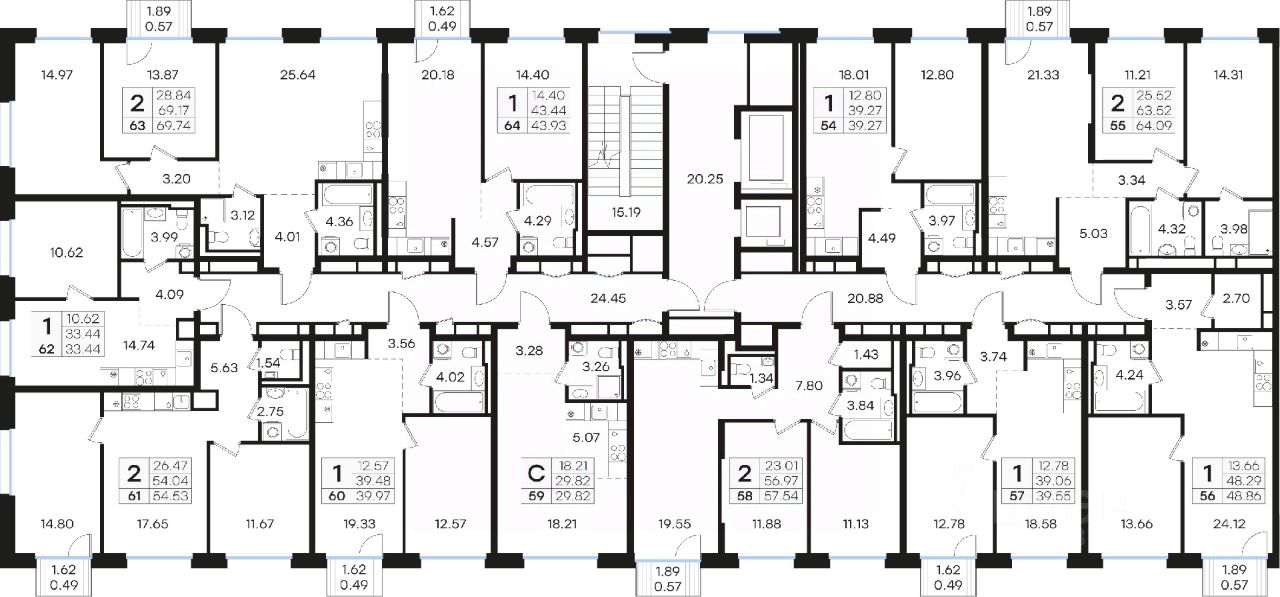 Общая площадь57,54 м2