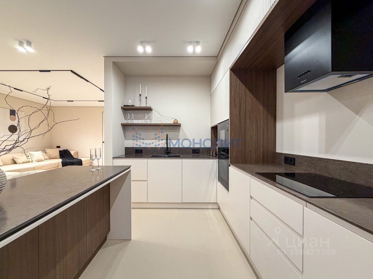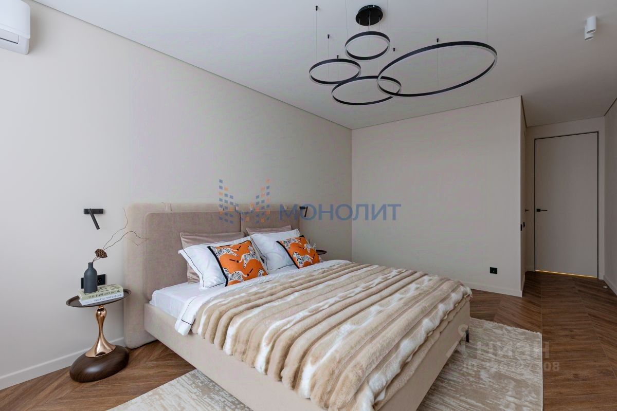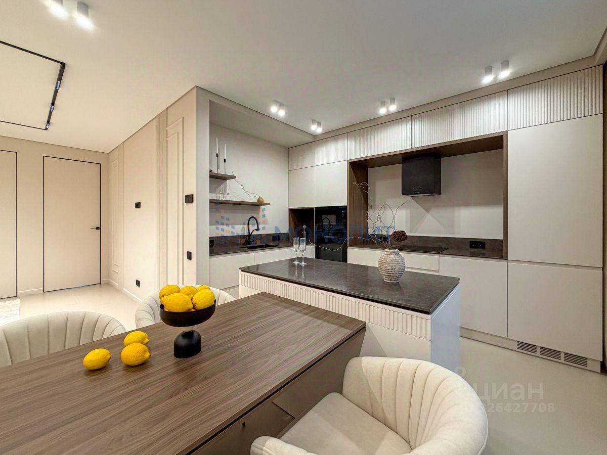 • Общая площадь 125 м². Комфортабельная планировка на две стороны дома с четырьмя комнатами: мастер-спальня с личным санузлом 20.5 + 7 м², спальные комнаты 13 м² и 19 м², гостиная 20 м², просторная кухня-столовая 29 м², дополнительный санузел. Выполнено обустройство квартиры мебелью, выполненной на заказ, и полная комплектация техникой.