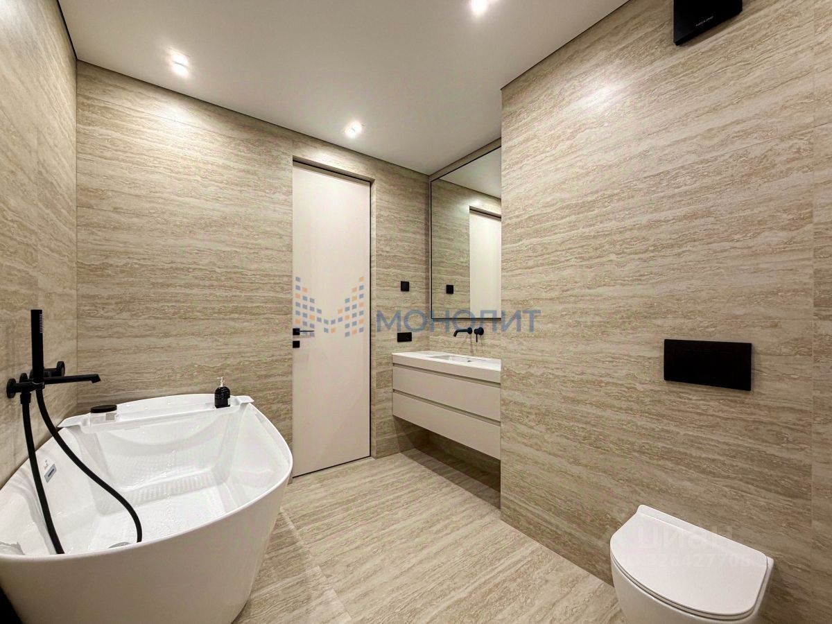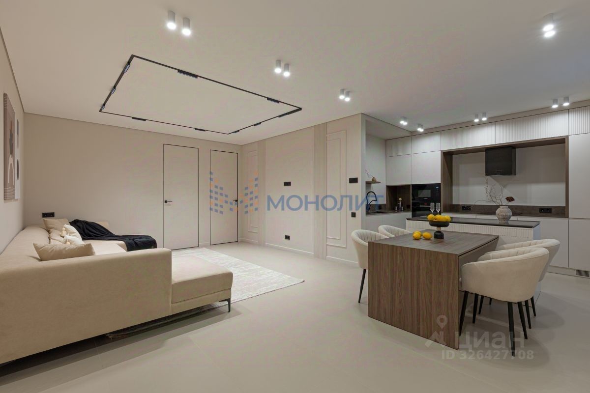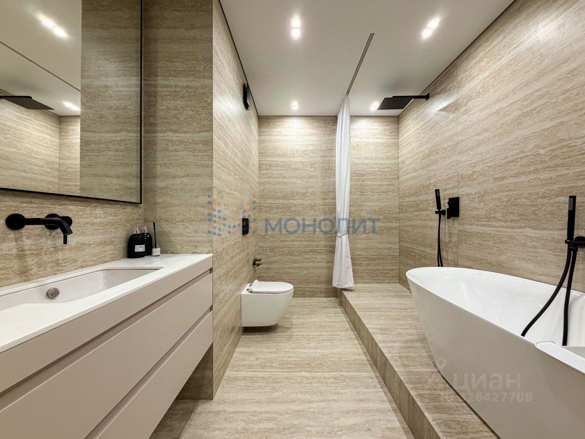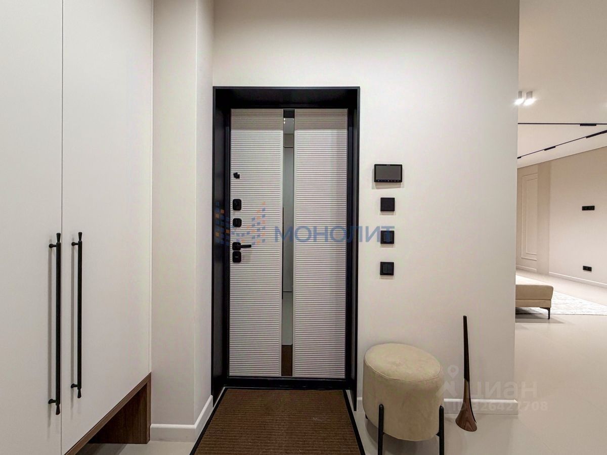 • Общая площадь 125 м². Комфортабельная планировка на две стороны дома с четырьмя комнатами: мастер-спальня с личным санузлом 20.5 + 7 м², спальные комнаты 13 м² и 19 м², гостиная 20 м², просторная кухня-столовая 29 м², дополнительный санузел. Выполнено обустройство квартиры мебелью, выполненной на заказ, и полная комплектация техникой.