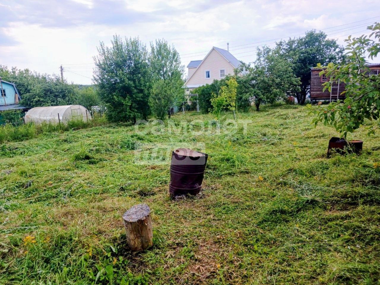 Здесь можно приехать и остаться с ночёвкой: на участке есть аккуратный домик 62 м (кухня, комната), а также беседка 33 м для отдыха. Всё готово к жизни: