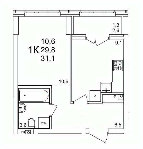 Общая площадь31,1 м2