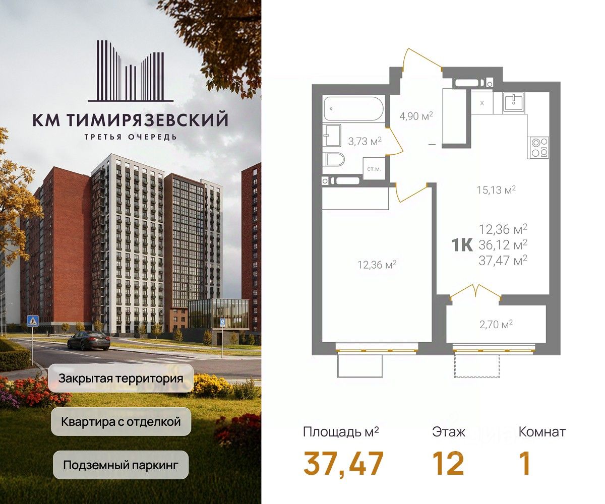 Фасады из керамического кирпича — надёжно и стильно Закрытый двор без машин — безопасность и уют Благоустройство продуманная территория для детей и взрослых Подземный паркинг — два уровня, лифт в жилую часть Коммерческие помещения на 1 этаже — магазины и сервисы рядом Все квартиры с готовой отделкой До 4 квартир в обособленном холле. КМ Тимирязевский. 3 очередь — ваш новый уровень комфорта.