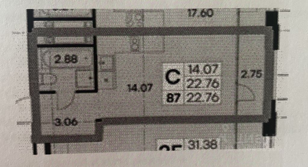 - Общая площадь: 22,76 м.