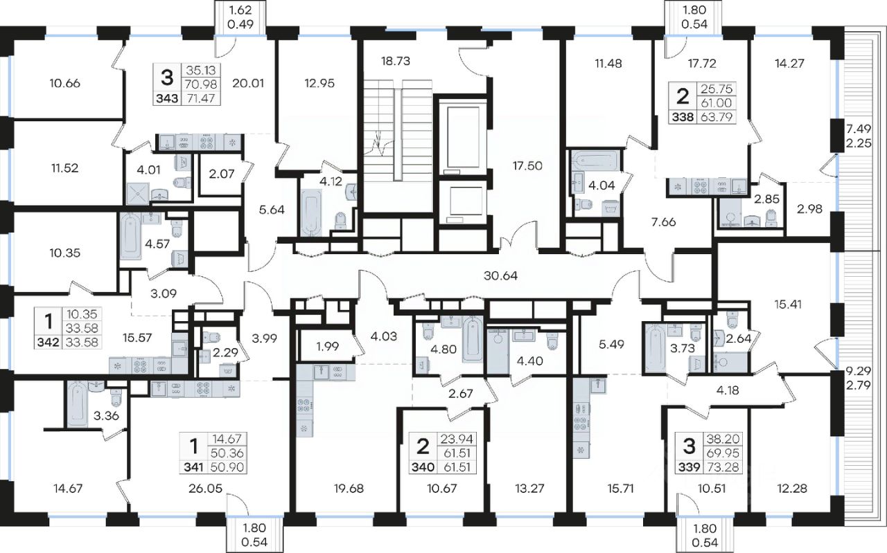 Продается 3-комн. квартира на 9-м этаже в строящемся проекте премиум-класса GloraX Premium Гребной канал. Общая площадь лота составляет 73,28 кв. м, из которых 38,20 кв. м отведено под жилую и 15,71 кв. м под кухонную зону. Номер квартиры - 339.