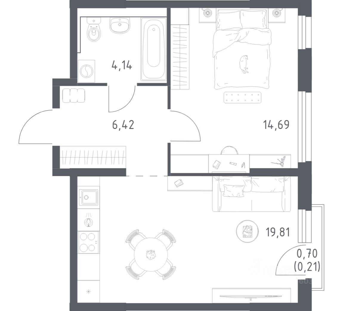 Квартиры с чистовой отделкой. В варианте с готовой отделкой мы поклеили обои под покраску, постелили полы в комнатах и санузлах, выполнили отделку стен. Установили сантехнику и межкомнатные двери, провели электрику. Это лучшее соотношение цены, качества и затраченного времени. Осталось только выбрать место для обеденного стола и удобного дивана. Доступность дополнительных опций уточняйте у застройщика.