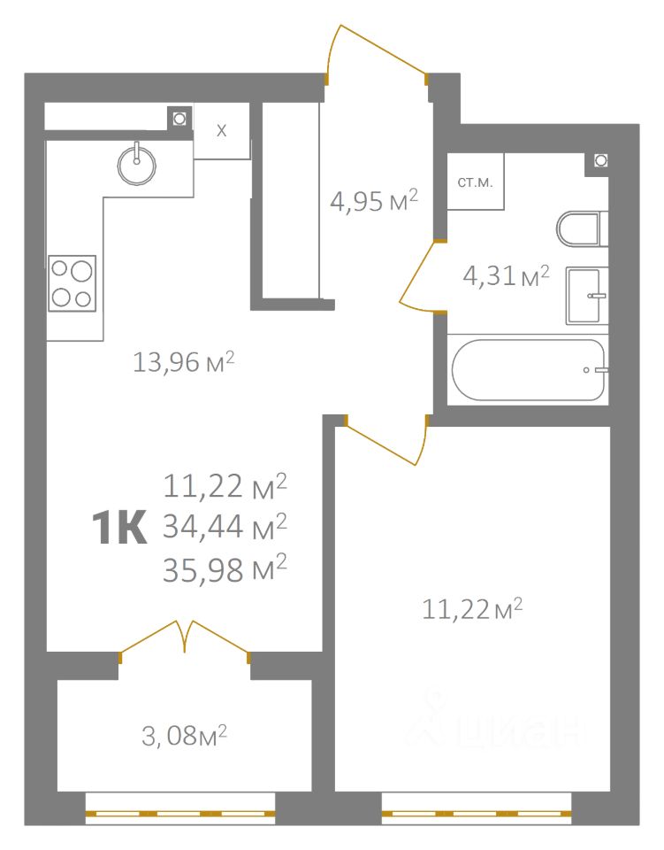 Общая площадь35,98 м2