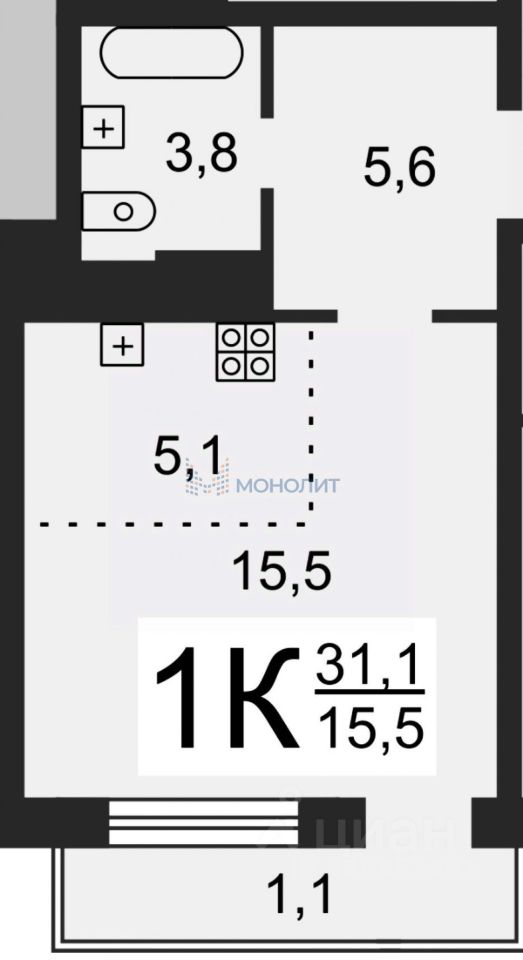 Предлагаем к продаже светлую студию общей площадью 31,10 м² на 18-м этаже 25-этажного дома. Преимущества квартиры: • Хорошая планировка: кухня — 5.1м², на кухне остаётся кухонный гарнитур, шкаф для хранения, спальное место • Удобный 18-й этаж. Можно любоваться красивыми видами и закатами • Хороший ремонт • Окна на улицу • Есть застекленный балкон • Выгодное расположение: все необходимое для комфортной жизни в шаговой доступности