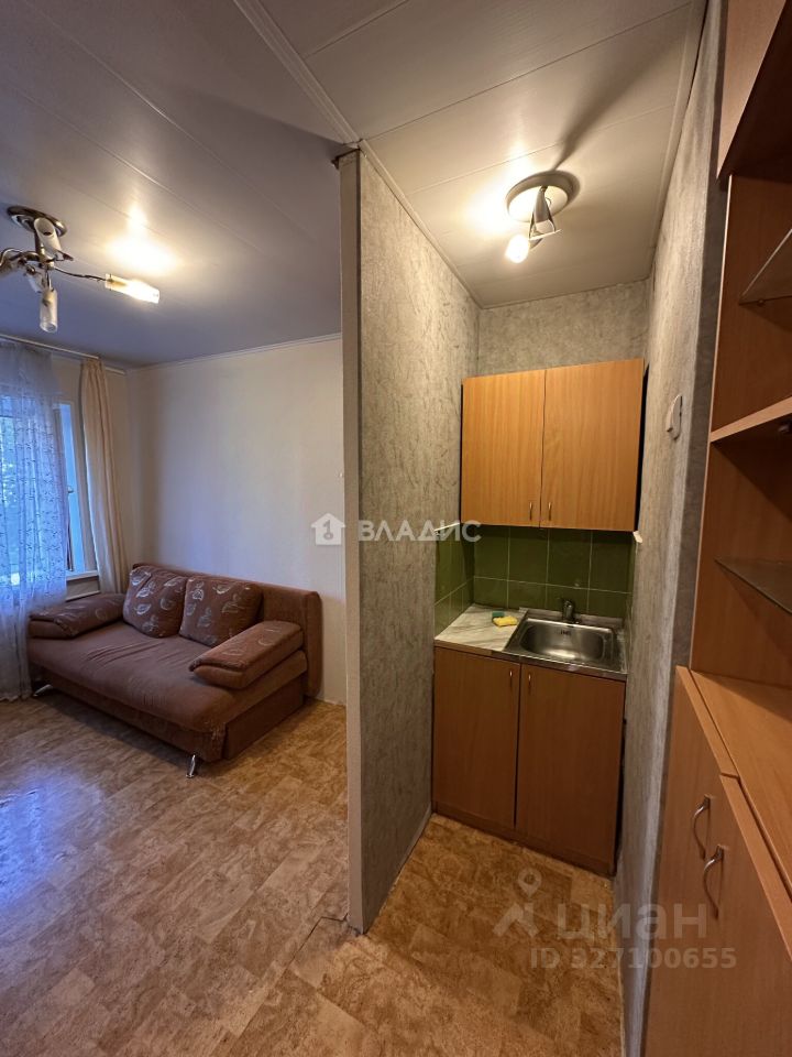 Код объекта: 2003374. Компактная квартира, гостинная совмещена с кухней, а спальное место представляет отдельную зону. Квартира расположена на втором этаже пятиэтажного кирпичного дома 1969 года постройки. Общая площадь составляет 23,8 кв. м, из которых 12,6 кв. м — жилая площадь, 5,7 кв. м — кухня. Высота потолков — 2,5 м. В квартире выполнен косметический ремонт, что позволяет новым владельцам сразу заселиться или при желании обновить интерьер по своему вкусу.