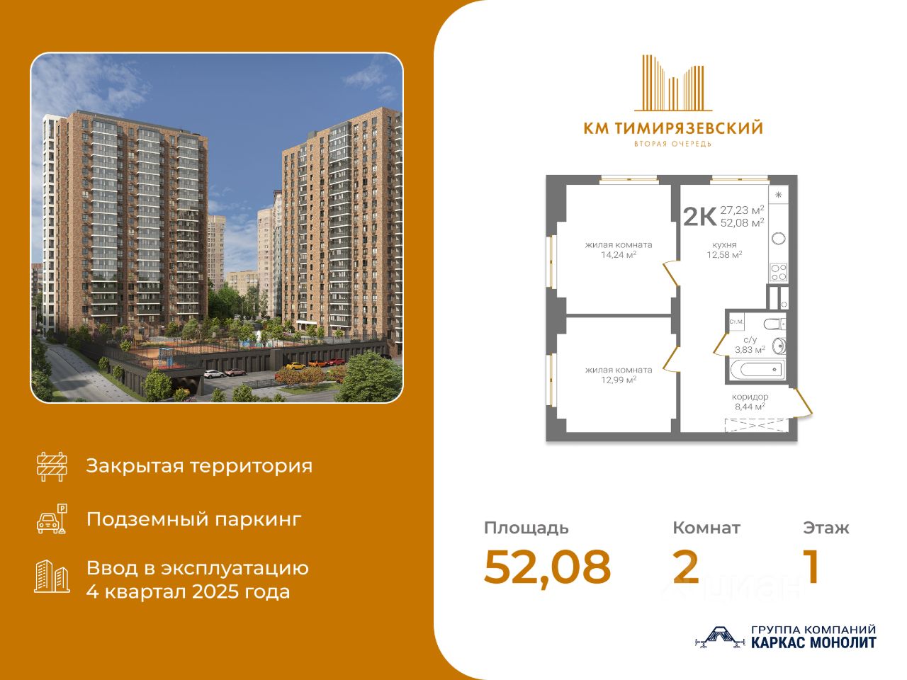 Общая площадь52,08 м2