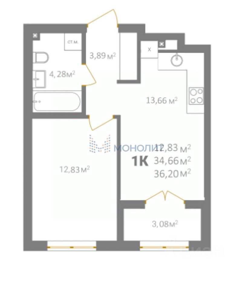 продам 1-к, Гагарина проспект, 1289 231 000 ₽