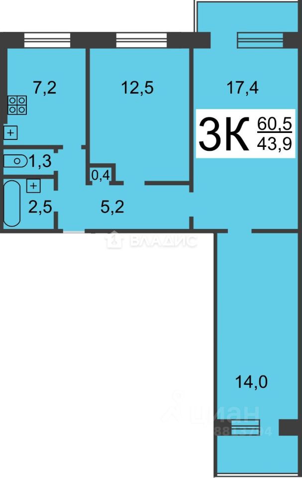 продам 3-к, Максима Горького, 1869 000 000 ₽