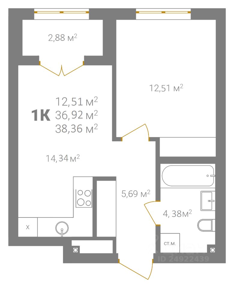 Общая площадь37,85 м2