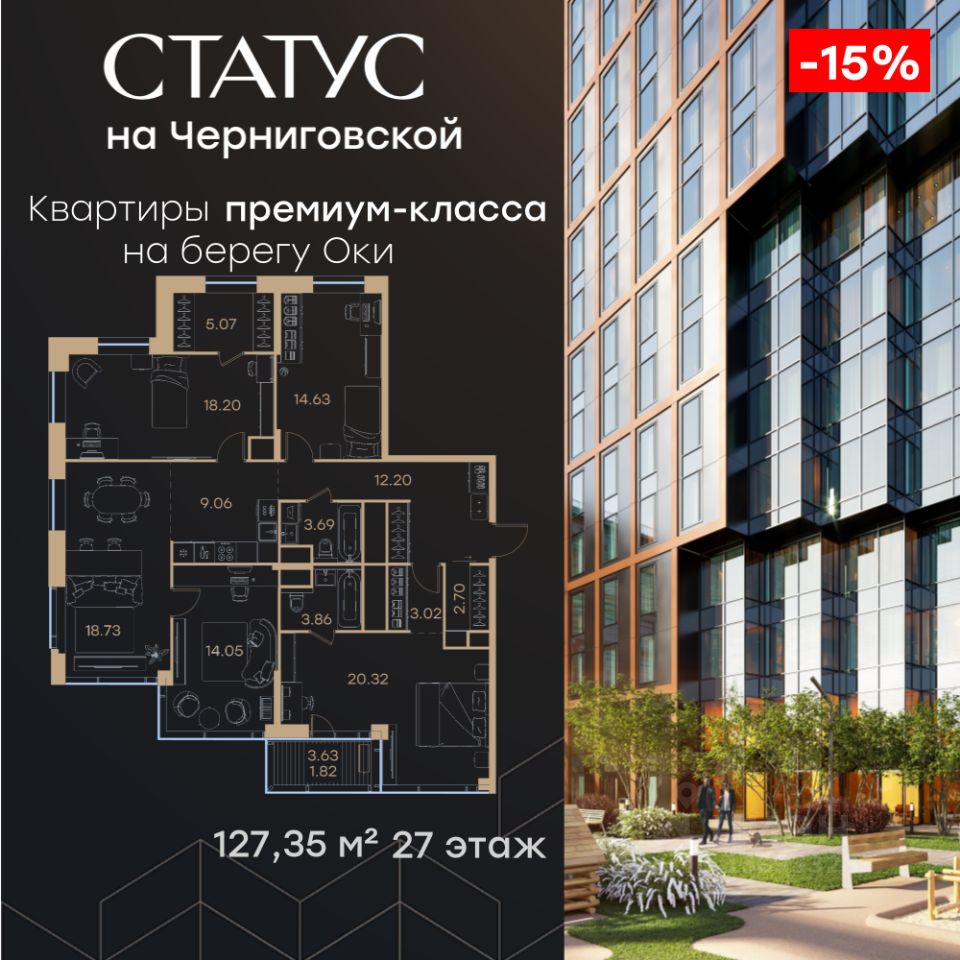 СТАТУС на Черниговской возвращает набережной и пространству вокруг исторический статус, привлекая тех, кто готов развиваться вместе с городом. Дорога до любимейшего променада нижегородцев Нижневолжской набережной займет всего 10 минут пешком, до ближайшей станции метро Горьковская 10 минут на автомобиле. Попасть на главную площадь города, Чкаловскую лестницу и в Кремль на машине за 11 мин? Легко! И всего 48 минут займет путь до международного аэропорта имени Чкалова, что станет неоспоримым преимуществом для тех, кто часто летает в командировки.