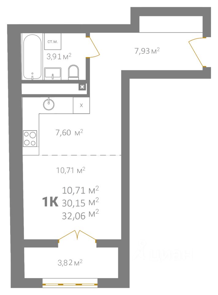 Общая площадь32,06 м2